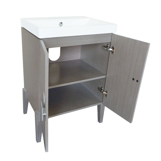 Bellaterra Home 25" 2-Door Gray Freestanding Vanity Set With Vitreous China Integrated Sink and Vitreous China Top
