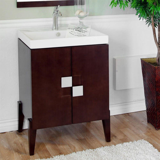 Bellaterra Home 24" 1-Drawer Wenge Freestanding Vanity Set With Ceramic Integrated Sink and Ceramic Top