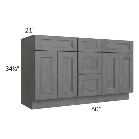 RTA Stone Grey 60" 3-Drawer Vanity Sink Base Cabinet with Drawers