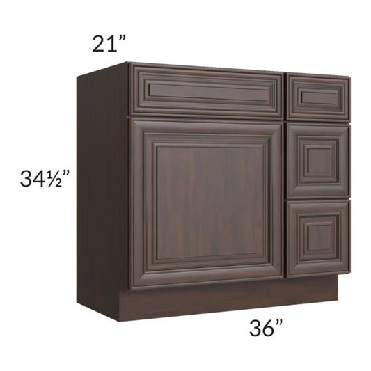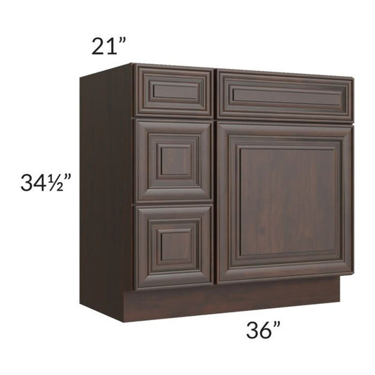 RTA Biscotti Cafe Glazed 36" Vanity Sink Base Cabinet (Drawers on Right)