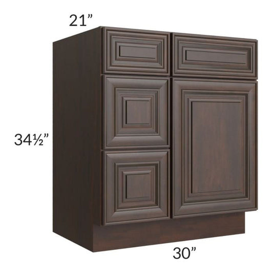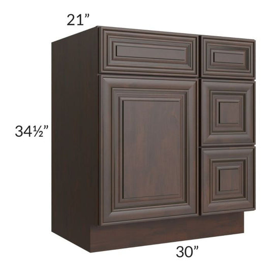 RTA Biscotti Cafe Glazed 30" Vanity Sink Base Cabinet (Drawers on Right)