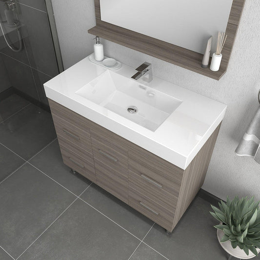 Alya Bath Ripley 39" Single Gray Modern Freestanding Bathroom Vanity With Integrated Acrylic Top, Acrylic Sink and Wall Mounted Mirror
