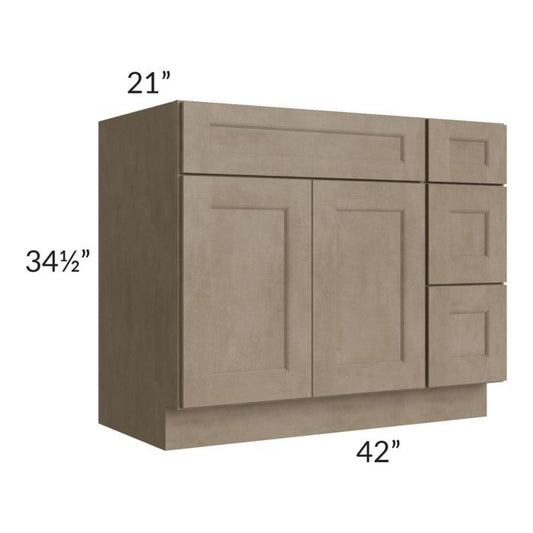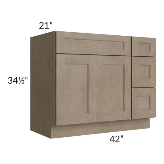 RTA Cobblestone Grey 42" Vanity Sink Base Cabinet (Drawers on Right)