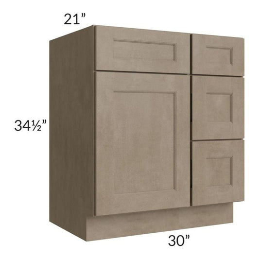 RTA Cobblestone Grey 30" Vanity Sink Base Cabinet (Drawers on Right) with 1 Skin
