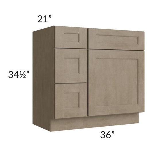 RTA Cobblestone Grey 36" Vanity Sink Base Cabinet (Drawers on Right)