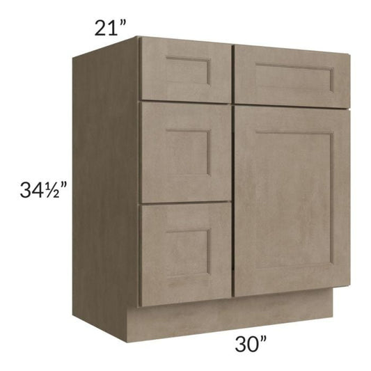 RTA Cobblestone Grey 30" Vanity Sink Base Cabinet (Drawers on Right)