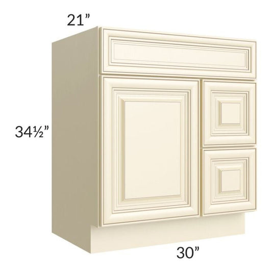 RTA Phoenix Cream Glaze 30" x 21" Vanity Sink Base Cabinet (Door on Right)