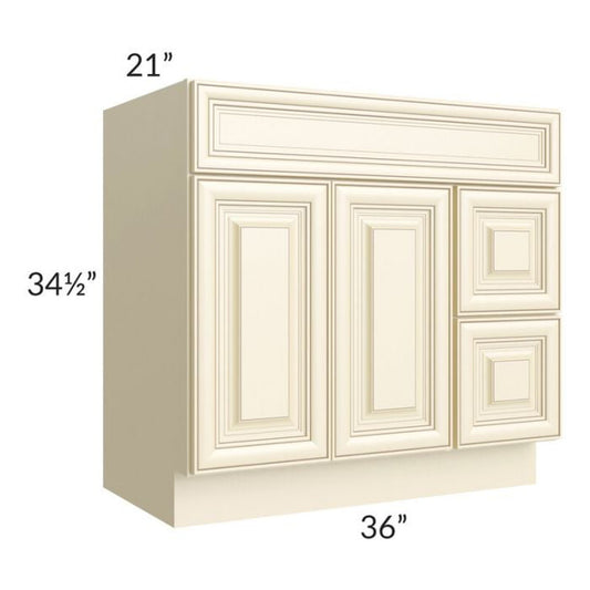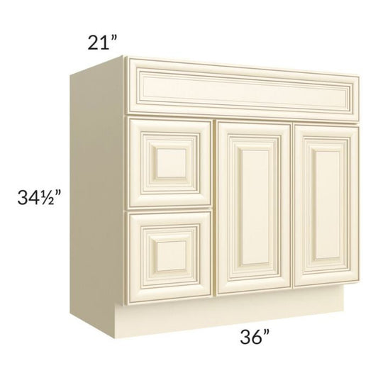 RTA Phoenix Cream Glaze 36" x 21" Vanity Sink Base Cabinet (Doors on Right)