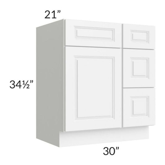 RTA Lakewood White 30" Vanity Base Cabinet (Drawers on Right)