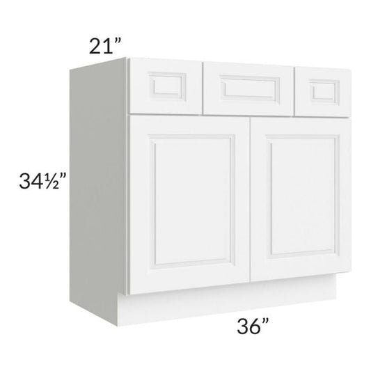 RTA Lakewood White 36" Vanity Base Cabinet with 2 Decorative End Panels