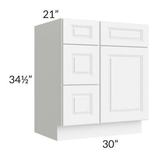 RTA Lakewood White 30" Vanity Base Cabinet (Drawers on Left)