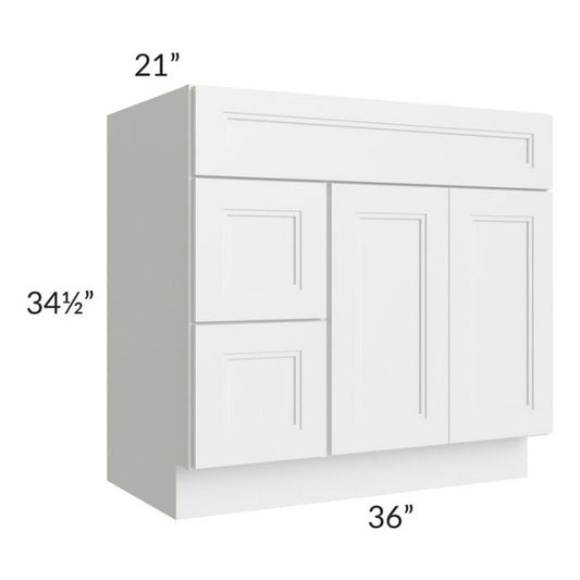 RTA Charlotte White 36" x 21" Vanity Sink Base Cabinet (Doors on Right) with 1 Decorative End Panel