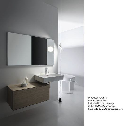 Laufen Val 22" x 12" Matte Black Wall-Mounted Shelf-Left Bathroom Sink Without Faucet Hole and Overflow Slot