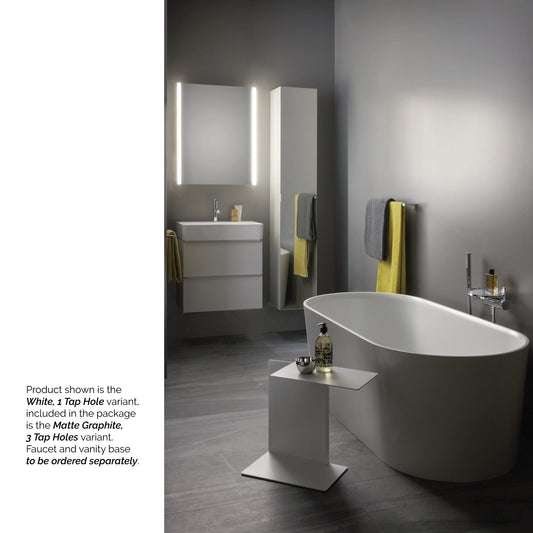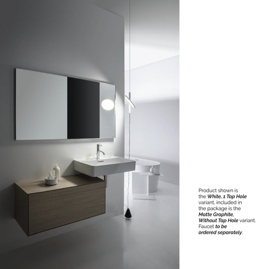 Laufen Val 22" x 12" Matte Graphite Wall-Mounted Shelf-Right Bathroom Sink With Faucet Hole on the Left