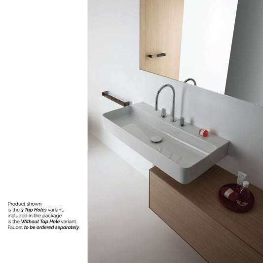 Laufen Val 24" x 12" Rectangular White Countertop Bathroom Sink Without Faucet Hole