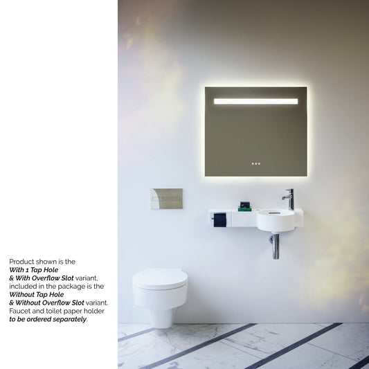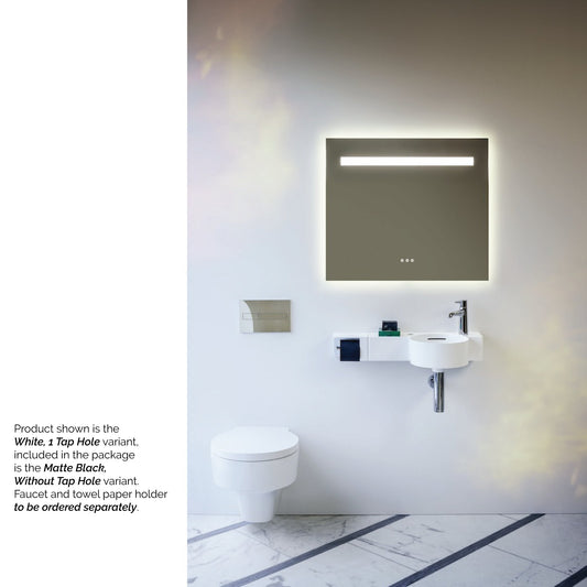 Laufen Val 22" x 12" Matte White Wall-Mounted Shelf-Left Bathroom Sink With Faucet Hole on the Right