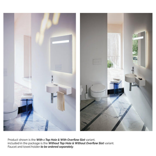 Laufen Val 22" x 12" Matte White Wall-Mounted Shelf-Left Bathroom Sink Without Faucet Hole and Overflow Slot
