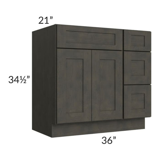 RTA Charcoal Grey Shaker 36" Vanity Base Cabinet (Drawers on Right) with 1 Decorative End Panel