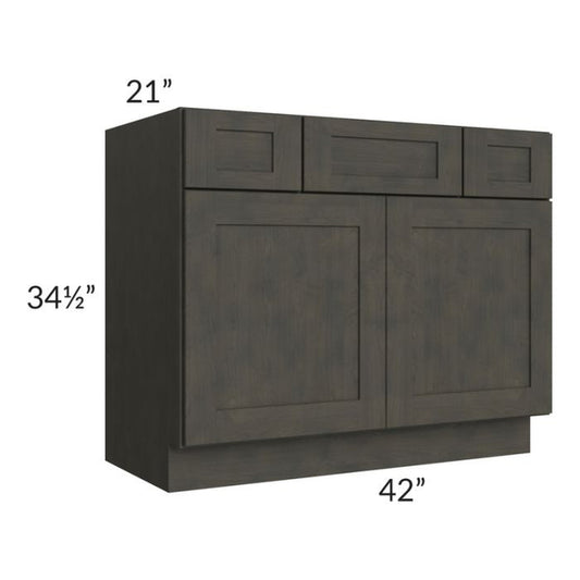 RTA Charcoal Grey Shaker 42" Vanity Base Cabinet with 1 Decorative End Panel