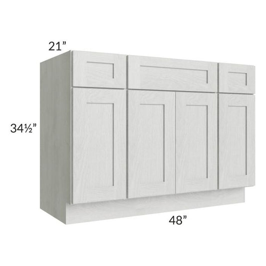 RTA Frosted White Shaker 48" Vanity Sink Base Cabinet with Drawers with 2 Decorative End Panels