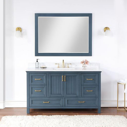 Altair Isla 60" Single Classic Blue Freestanding Bathroom Vanity Set With Mirror, Aosta White Composite Stone Top, Rectangular Undermount Ceramic Sink, and Overflow