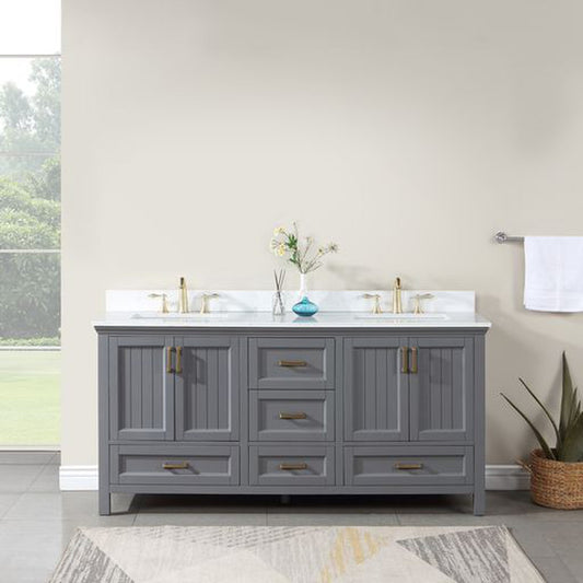 Altair Isla 72" Double Gray Freestanding Bathroom Vanity Set With Aosta White Composite Stone Top, Two Rectangular Undermount Ceramic Sinks, and Overflow