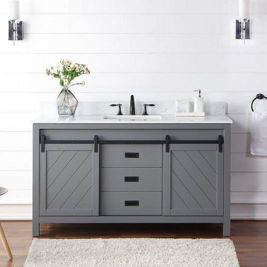 Altair Kinsley 60" Single Gray Freestanding Bathroom Vanity Set With Aosta White Composite Stone Top, Rectangular Undermount Ceramic Sink, and Overflow