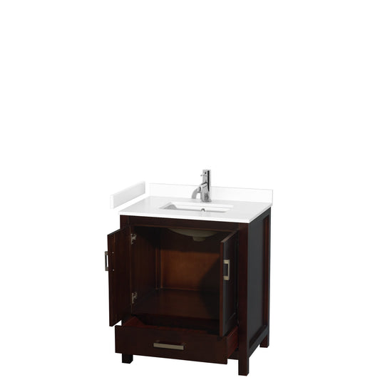 Wyndham Collection Sheffield 30" Single Bathroom Vanity in Espresso, White Cultured Marble Countertop, Undermount Square Sink, No Mirror
