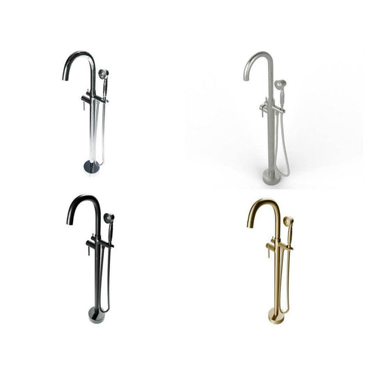 Castello USA Neptune Brushed Gold Standard Freestanding Bathtub Filler With Shower Attachment