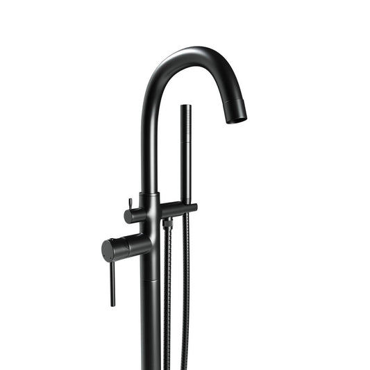 Castello USA Neptune Matte Black Standard Freestanding Bathtub Filler With Shower Attachment