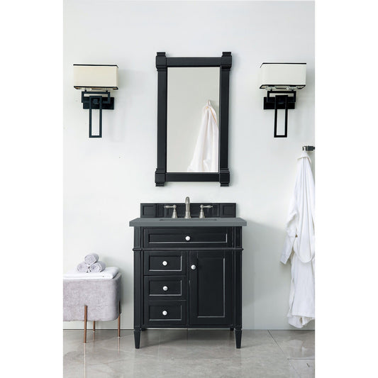 James Martin Vanities Brittany 30" Black Onyx Single Vanity With 3cm Grey Expo Quartz Top