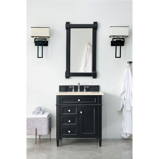 James Martin Vanities Brittany 30" Black Onyx Single Vanity With 3cm Eternal Jasmine Pearl Quartz Top