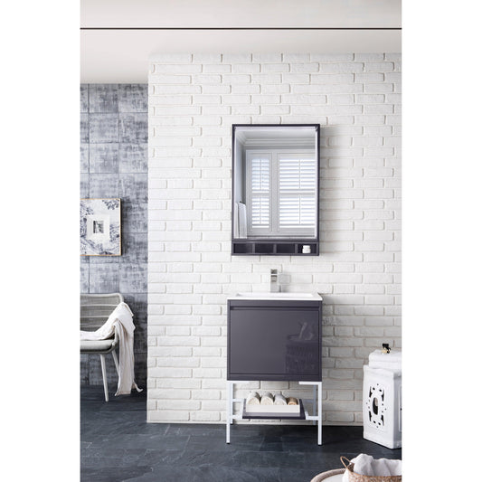 James Martin Vanities Milan 23.6" Modern Grey Glossy, Glossy White Metal Base Single Vanity Cabinet