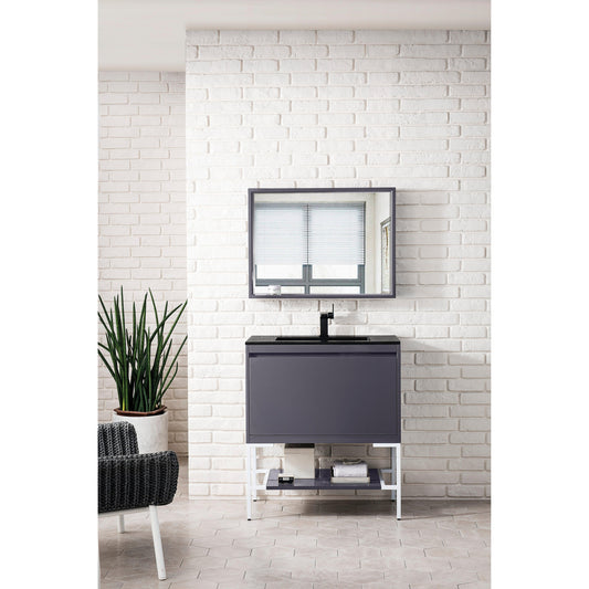 James Martin Vanities Milan 31.5" Modern Grey Glossy, Glossy White Single Vanity Cabinet With Charcoal Black Composite Top
