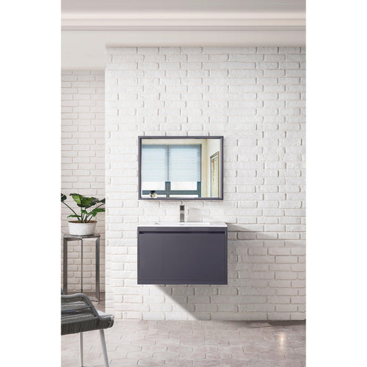 James Martin Vanities Milan 31.5" Modern Grey Glossy Single Vanity Cabinet With Glossy White Composite Top