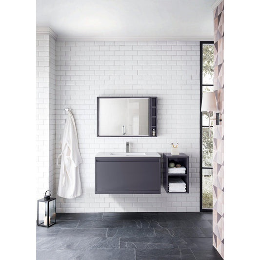 James Martin Vanities Milan 35.4" Modern Grey Glossy Single Vanity Cabinet With Glossy White Composite Top