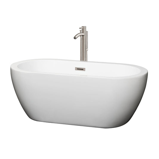 Wyndham Collection Soho 60" Freestanding Bathtub in White With Floor Mounted Faucet, Drain and Overflow Trim in Brushed Nickel