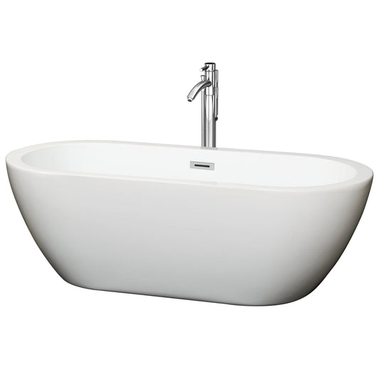Wyndham Collection Soho 60" Freestanding Bathtub in White With Floor Mounted Faucet, Drain and Overflow Trim in Polished Chrome