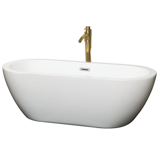 Wyndham Collection Soho 60" Freestanding Bathtub in White With Polished Chrome Trim and Floor Mounted Faucet in Brushed Gold
