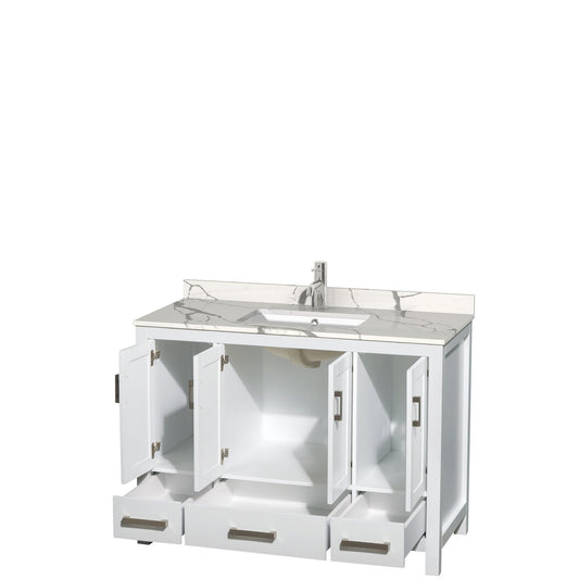 Wyndham Collection Sheffield 48" Single Bathroom Vanity in White, Calacatta Quartz Countertop, Undermount Square Sink, No Mirror