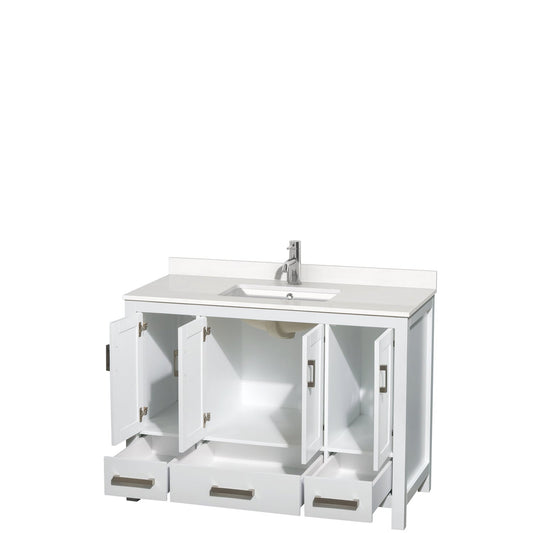 Wyndham Collection Sheffield 48" Single Bathroom Vanity in White, White Quartz Countertop, Undermount Square Sink, No Mirror