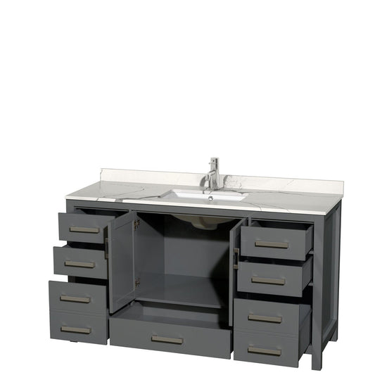 Wyndham Collection Sheffield 60" Single Bathroom Vanity in Gray, Calacatta Quartz Countertop, Undermount Square Sink, No Mirror