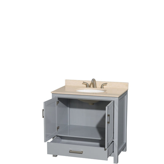 Wyndham Collection Sheffield 36" Single Bathroom Vanity in Gray, Ivory Marble Countertop, Undermount Oval Sink, and No Mirror