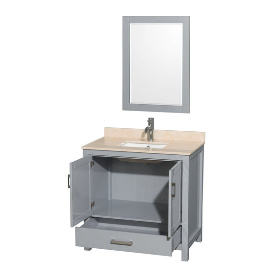 Wyndham Collection Sheffield 36" Single Bathroom Vanity in Gray, Ivory Marble Countertop, Undermount Square Sink, and 24" Mirror