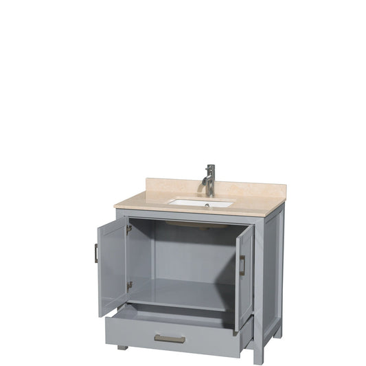 Wyndham Collection Sheffield 36" Single Bathroom Vanity in Gray, Ivory Marble Countertop, Undermount Square Sink, and No Mirror