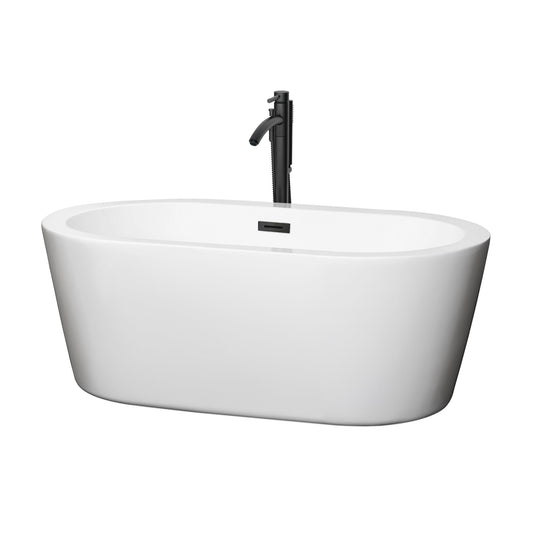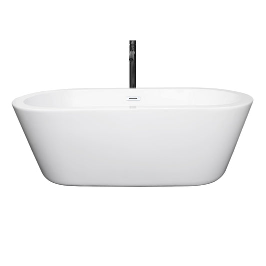 Wyndham Collection Mermaid 60" Freestanding Bathtub in White With Floor Mounted Faucet, Drain and Overflow Trim in Matte Black