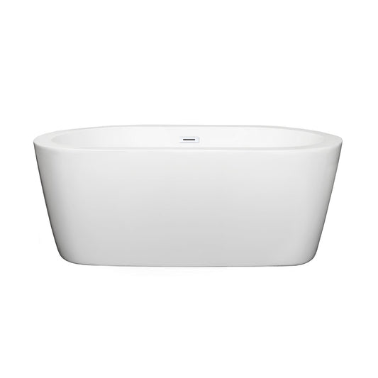 Wyndham Collection Mermaid 60" Freestanding Bathtub in White With Shiny White Drain and Overflow Trim