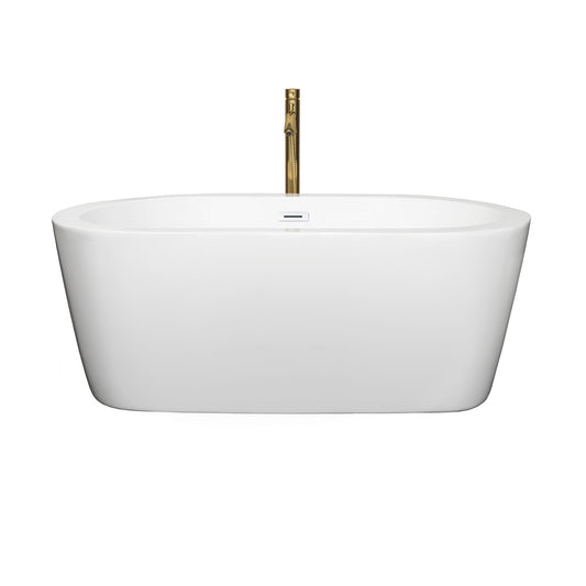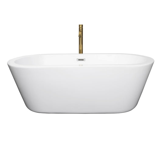 Wyndham Collection Mermaid 60" Freestanding Bathtub in White With Shiny White Trim and Floor Mounted Faucet in Brushed Gold