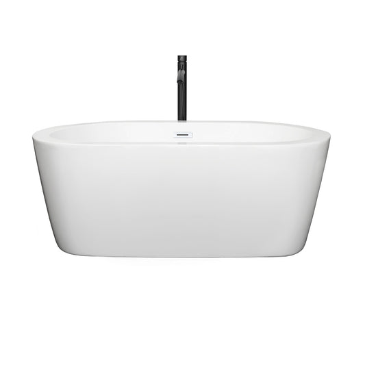Wyndham Collection Mermaid 60" Freestanding Bathtub in White With Matte Black Drain and Overflow Trim