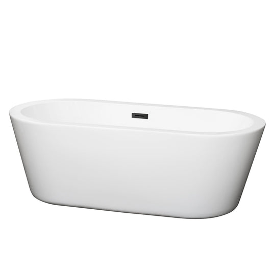 Wyndham Collection Mermaid 67" Freestanding Bathtub in White With Matte Black Drain and Overflow Trim